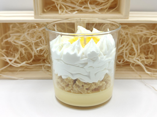Plongez dans une ambiance réconfortante et gourmande avec la bougie tarte au citron meringué déstructurée .