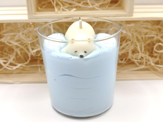 Plongez dans une ambiance de banquise avec ce petit ours polaire sur sa neige.